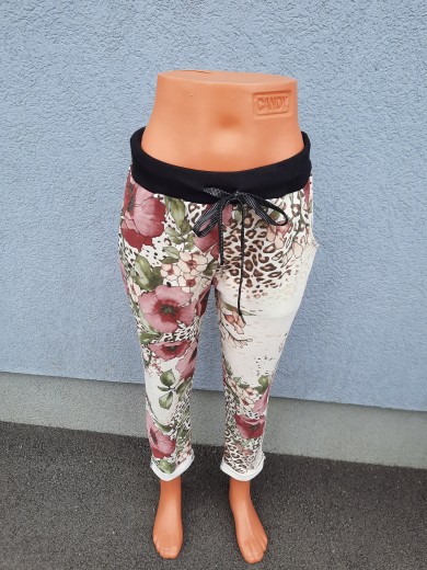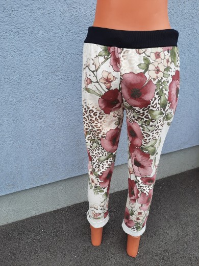 Modne, športne, udobne in lahkotne dolge hlače, ki jih lahko oblečemo k supergam, natikačem, japonkam... V pasu jih lahko dodatno stisnemo z vrvico, ob stani žepa. Če jih zavihamo, jih lahko nosimo tudi na 7/8 dolžino.